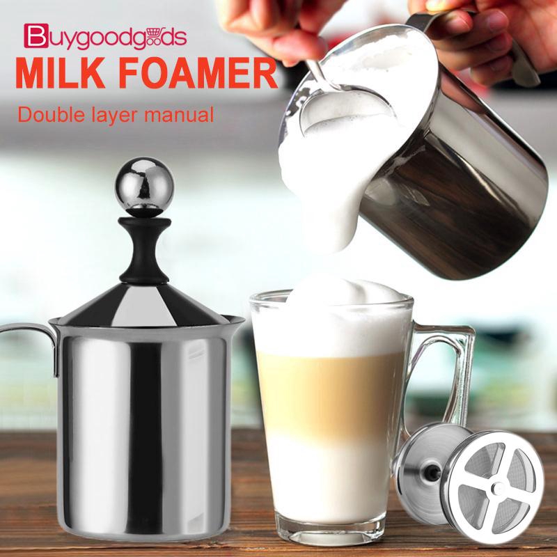 400 800ml Manual Milk Frother Double Mesh Coffee Cappuccino Foamer